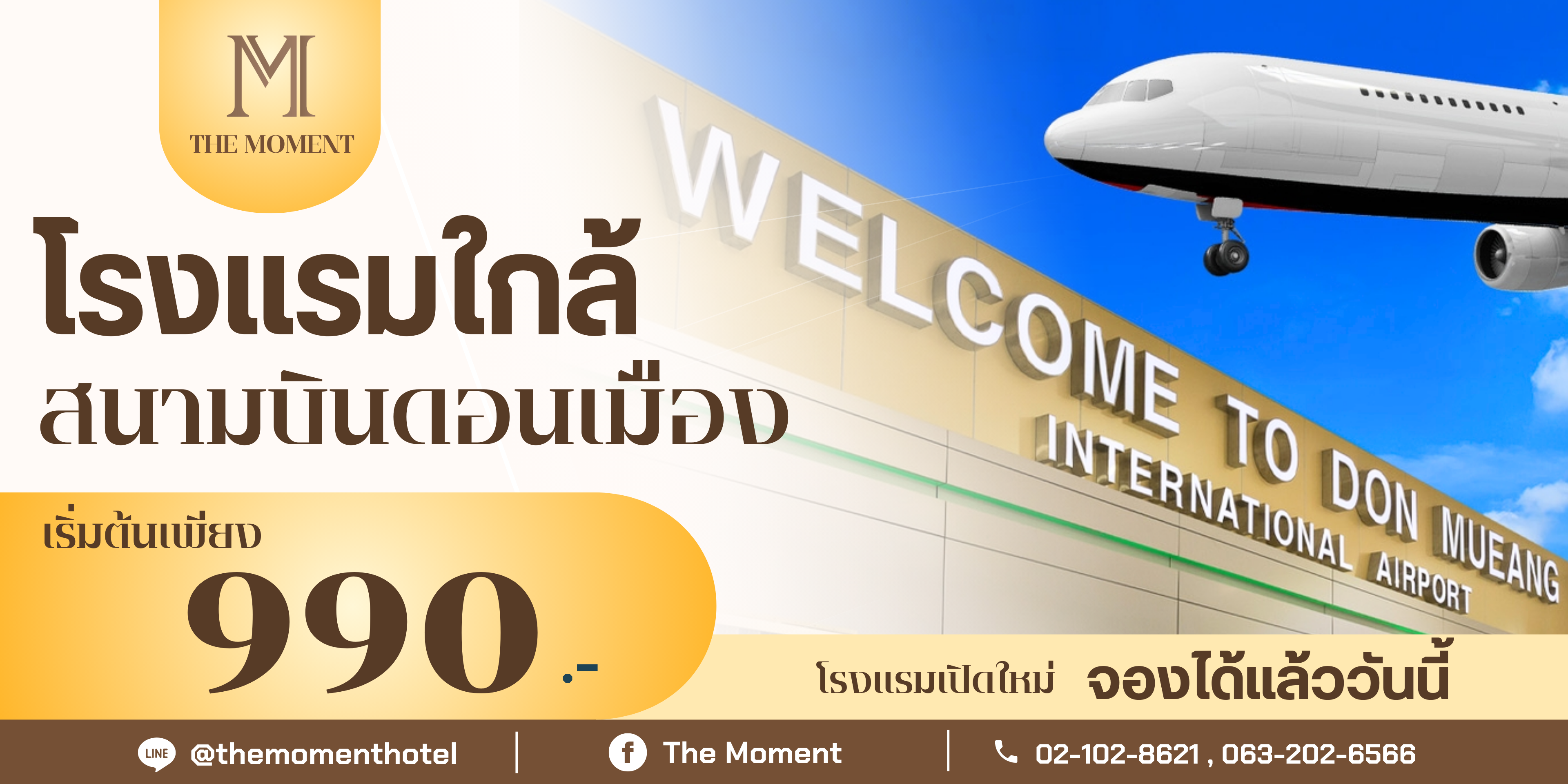 The Moment ที่พักใหม่ที่จะทำให้ทุกการเดินทางของคุณเป็นช่วงเวลาที่น่าจดจำ ด้วยบริการคุณภาพ ทำเลสะดวก และราคาที่คุ้มค่าสำหรับท่านใดที่กำลังมองหาที่พักใกล้สนามบินดอนเมือง โรงแรมรายวันใกล้สนามบินดอนเมือง ห้องพักรายวันใกล้สนามบินดอนเมือง หรือ ที่พักหลักร้อยใกล้สนามบินดอนเมือง ขอแนะนำ The Moment โรงแรมเปิดใหม่ใกล้สนามบินดอนเมือง