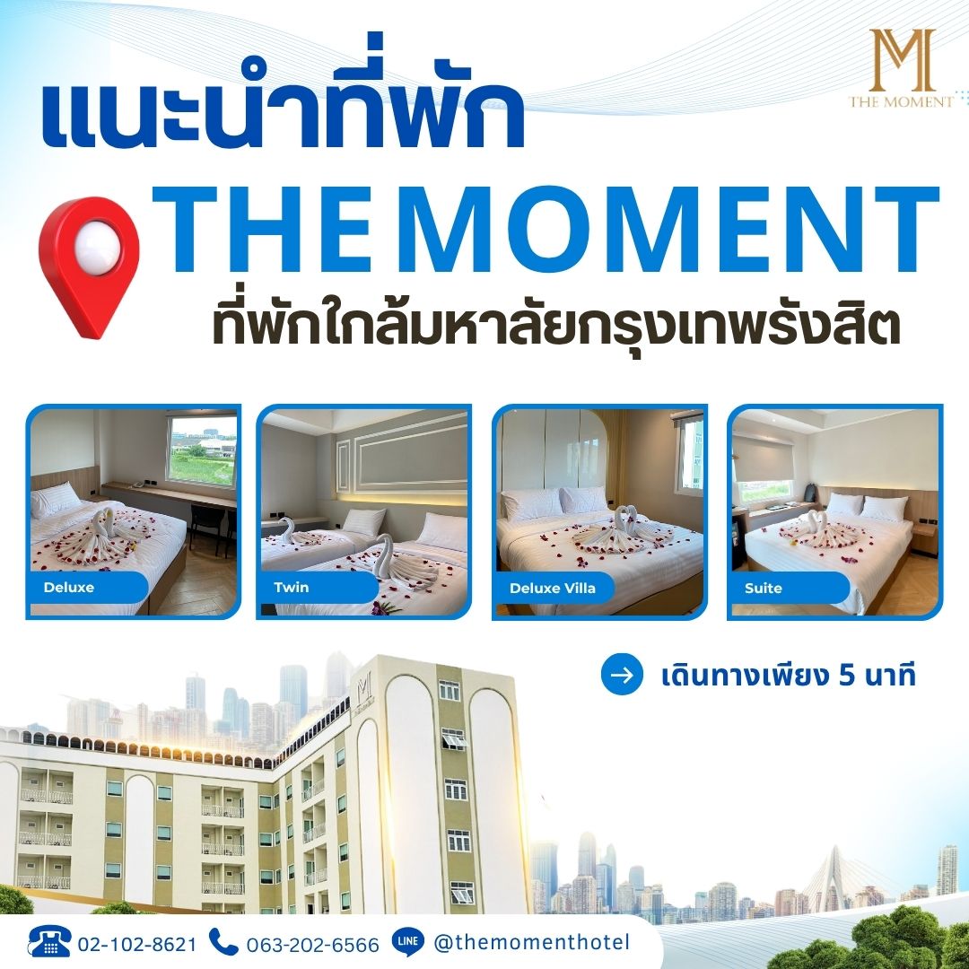 🏨สำหรับท่านใดที่มาร่วมงาน BU OPEN HOUSE 2025 กำลังมองหาที่พักใกล้BU Open House ที่พักใกล้มหาลัยกรุงเทพรังสิต ห้องพักรายวันใกล้มหาลัยกรุงเทพรังสิต ขอแนะนำ The Moment ที่พักเปิดใหม่ย่านรังสิต ห้องพักรายวันใกล้มอกรุงเทพ หาที่พักใกล้BU โรงแรมราคาถูกรังสิต เดินทางสะดวก มีที่จอดรถ อินเทอร์เน็ตฟรี ห้องพักสะอาดพร้อมเฟอร์นิเจอร์ครบ มีทั้งแบบรายวันเริ่มต้นเพียง 990.- และรายเดือนราคาประหยัด เหมาะสำหรับผู้ปกครอง นักเรียน นักศึกษา