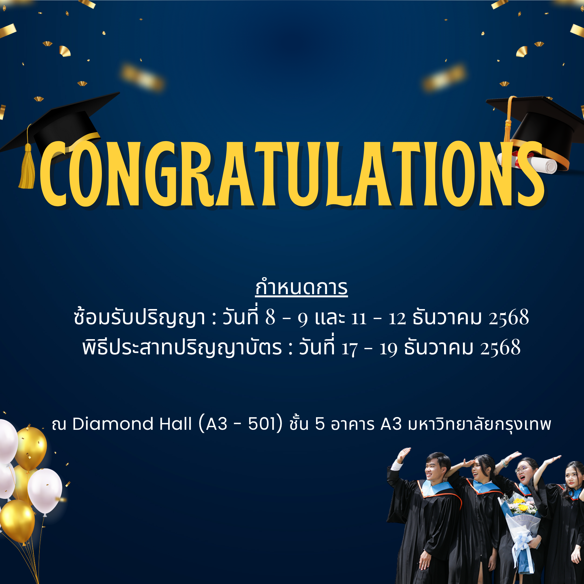 ขอแสดงความยินดีกับบัณฑิตทุกท่าน 🎉 ที่กำลังจะก้าวสู่ความสำเร็จครั้งสำคัญในชีวิต! มหาวิทยาลัยกรุงเทพกำหนดจัด พิธีประสาทปริญญาบัตร ประจำปี 2568 พร้อมวันซ้อมใหญ่และซ้อมย่อย เพื่อให้บัณฑิตได้เตรียมความพร้อมก่อนวันรับจริงอย่างสมบูรณ์แบบ