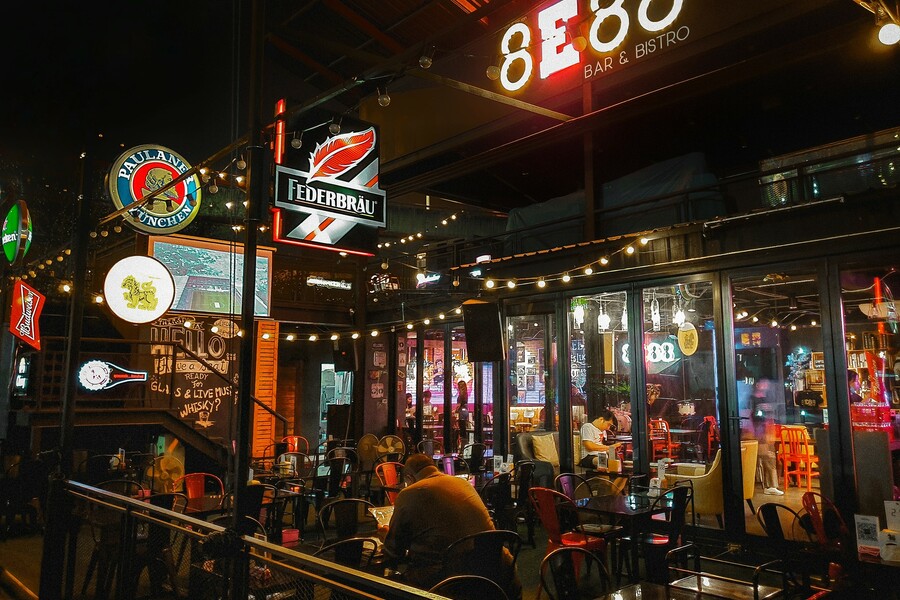 ร้าน 8E88 Bar and Bistro เป็นร้านเหล้าที่ได้รับความนิยมในย่านธรรมศาสตร์รังสิต เนื่องจากมีทั้งเครื่องดื่มแอลกอฮอล์และอาหารที่น่าลิ้มลอง บรรยากาศของร้านตกแต่งในสไตล์โมเดิร์นที่ดูทันสมัย และยังมีมุมที่เหมาะกับการนั่งดื่มและพูดคุยกับเพื่อน ร้านนี้มีเครื่องดื่มหลากหลาย ตั้งแต่ค็อกเทลไปจนถึงเบียร์สด แถมยังมีเมนูอาหารบาร์ที่อร่อยและเหมาะกับการกินคู่กับเครื่องดื่ม